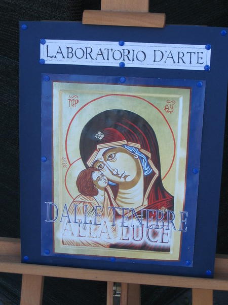 Mosaic Madonna Date: 07/12/2007 A mosaic of the Virgin Mary done in the early 1950s. We took to calling it "The Madonna with the Big Boobies"